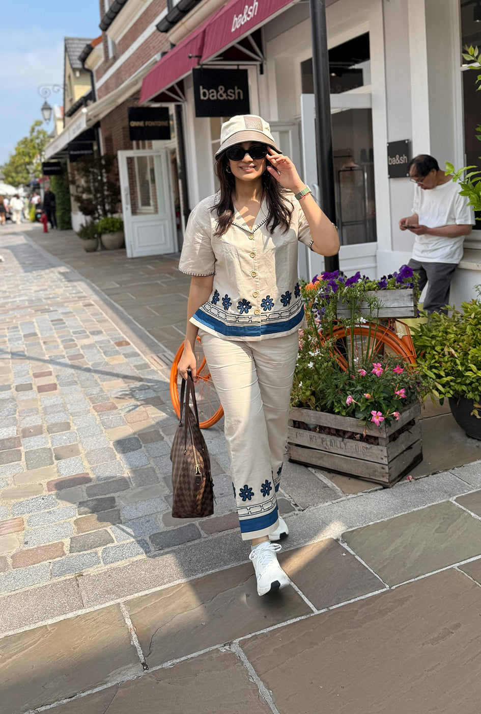 Elevate your wardrobe with our Daisy Coord Set, perfect for daytime strolls, shopping trips, or relaxed outings. Delicate floral embroidery and contrasting geometric borders along the hemline add a playful yet sophisticated touch.