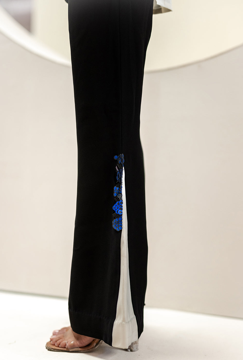 Our Mayfair Coord Set is a classic- handcrafted with intricate embroidery. Our Mayfair Coord Set is a must-have for all your formal dinners & get- together! The matching black crepe pants with embellished inserts on the sides complete the look!
