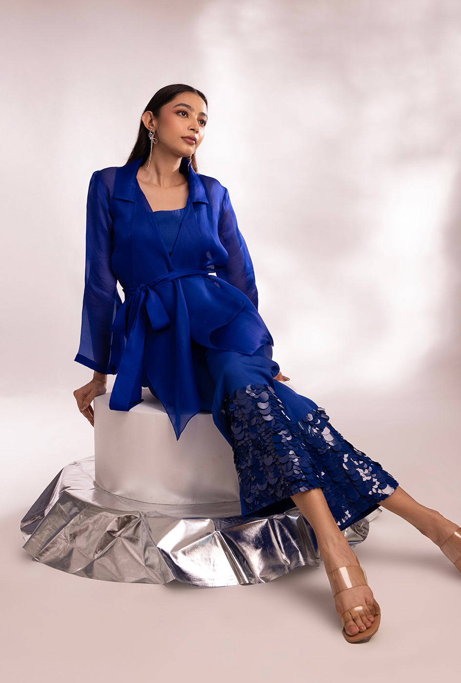Composition: Organza Jacket & Crepe Bottoms (with mild spandex)