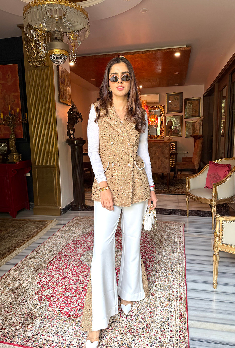 Elevate your winter style with our exquisite Soho Sleeveless Jacket — a timeless statement of elegance and sophistication. Perfect for winter brunches, festive celebrations, and chic gatherings.