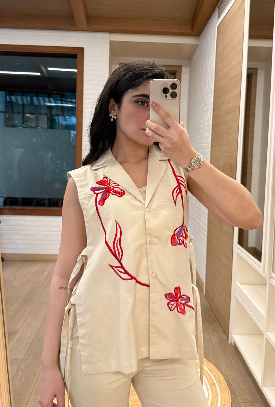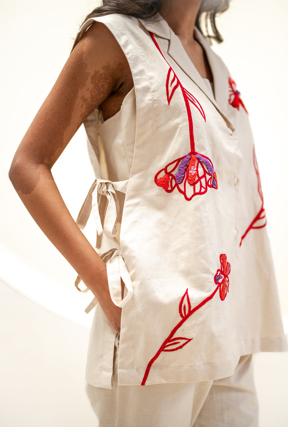 Make a statement with the Summer Bloom Jacket Set, adorned with intricate floral embroidery. Simply adjust the side knots, play with the button styling whether open or closed and you're all set to make a stylish entrance.
